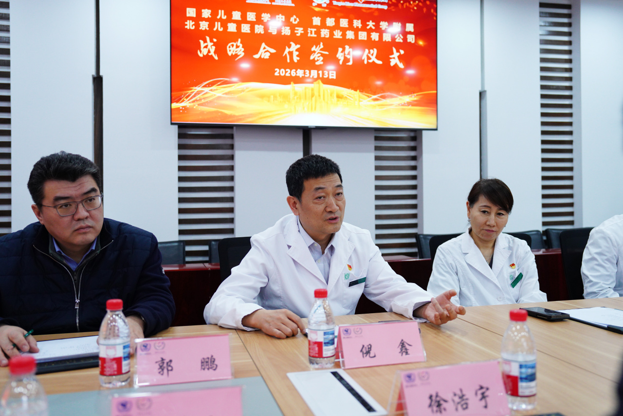 倪鑫表示,兒童用藥研發不能靠單打獨斗,必須走醫產協同、融合創新之路。北京兒童醫院作為我國兒科領域的“國家隊”,始終堅守“一切為了孩子健康”的初心,在疑難重癥診療、科研創新轉化、學科建設與人才培養等方面持續發力,致力于推動兒科醫療服務高質量發展。此次與揚子江藥業集團攜手,旨在深入貫徹落實“健康中國”戰略,搭建醫產協同創新平臺,共筑兒童健康堅實防線;同時也是院企優勢互補、資源整合的重要舉措,期待通過雙方協同,破解兒童用藥研發、臨床應用等領域的痛點難點,讓優質醫療與產業資源更好地惠及廣大患兒。